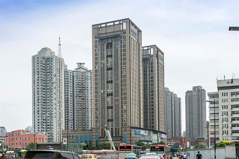 项目位于天津市河西区大沽南路,坐落于天津CBD国际商务中心区,毗邻地铁1号线下瓦房站,堪称地铁上盖物业,楼下新修的奉化道(快速路)、奉化桥,是新近打造的市重点工程,是连接机场、滨海新区、天津站枢纽、市中心CBD的一条全立交快速通道,是滨海到市中心的主动脉。 项目由天津市河西房地产开发有限公司建成,占地面积1.52万平方米,总建筑面积8.2万平方米,不仅是一个常规性综合物业,更要达到天津市场上行业先锋的境界,为满足使用功能。项目作为天津市重点商业楼盘之一,配有附属建筑商厦精品街和一座大型停车楼。 项目地下1层设有机械式停车场,地上1-4层为综合性商场,4层顶部设计3000平方米商务空中花园,与5层会馆连成一体;实现了自动化以及智能化管理,同时注意环保意识,采用VRVII变频集中式空调,并且实现了分户计量。 项目成为区域经济的推动器,塑造成体现现代化、国际化标准的标志性建筑;贯彻“适用、经济、美观”的原则,并力求体现功能的简明性与技术的先进性。 项目建筑采用底部大空间构架结构,双塔布局对称,两侧及楼前退出足够空间,有效组织绿化、广场、交通,充分利用用地,将两大主要人流分别组织,商场部分临大沽南路,从中间以及两侧进入,两座高层商务写字楼设单独出入大堂,与商场人流分开。 项目全部采用欧美流行的德式简约精装修,从地面到顶棚,从墙壁到空间与空间的隔断,特别注重“点、线、面”的视觉感受,色彩上以黑、白、灰为主色调,点缀以金色与银色。材料上注重极具国际商务气质的金属质感。无论是隔断框架还是顶棚灯具等,均为金属材质而空间以通透的玻璃分隔,特别适宜敞开式办公格局。